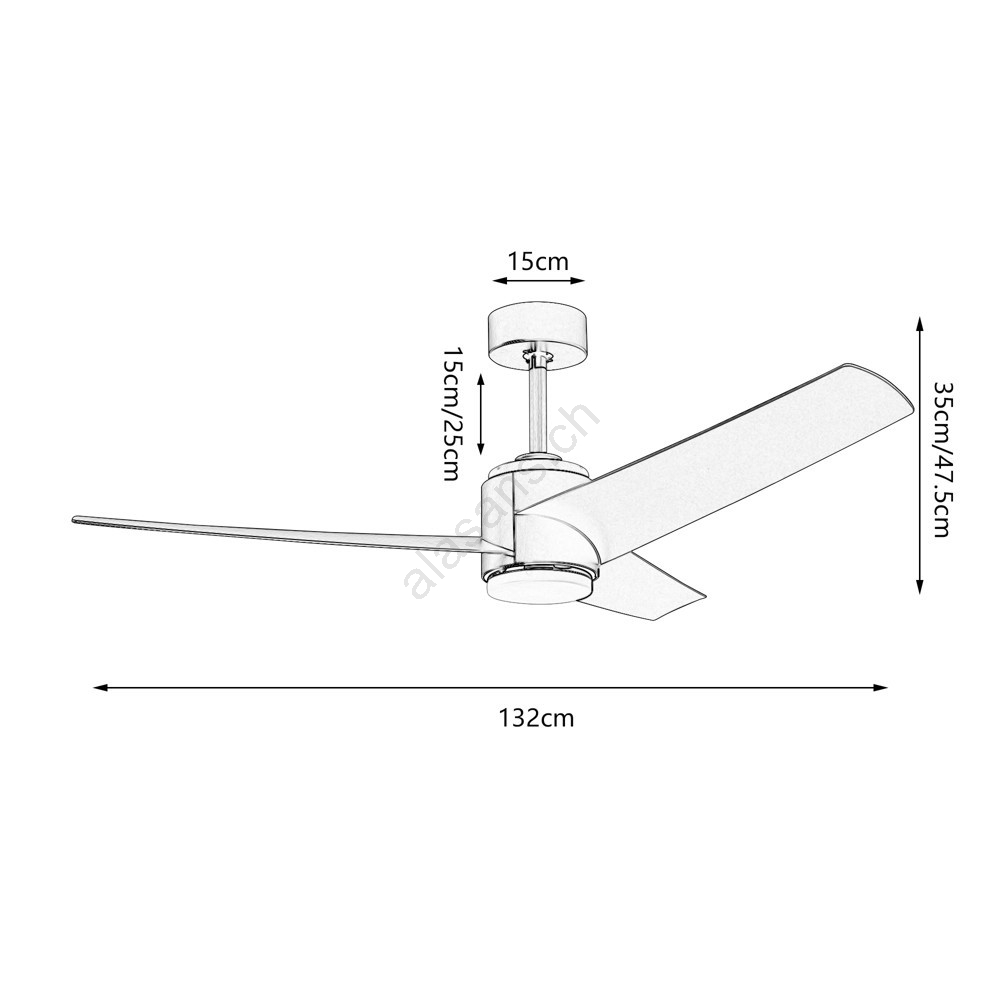 • Kombination aus moderner Leuchte und leistungsstarkem Ventilator in elegantem Design.