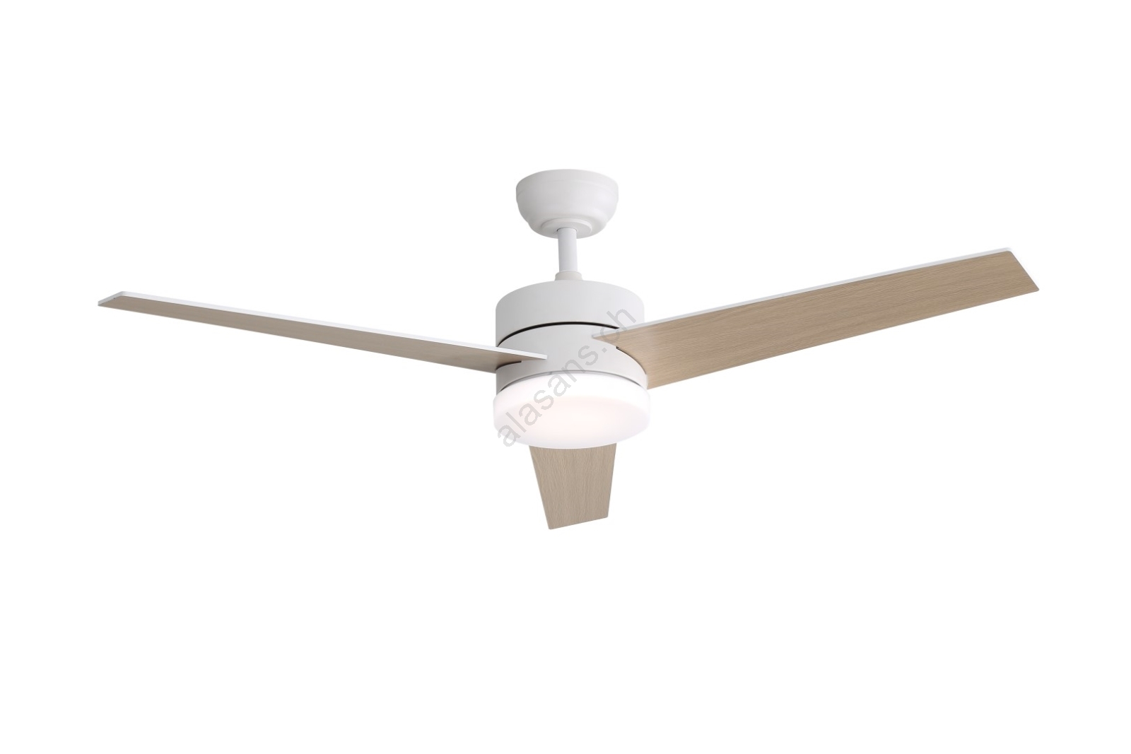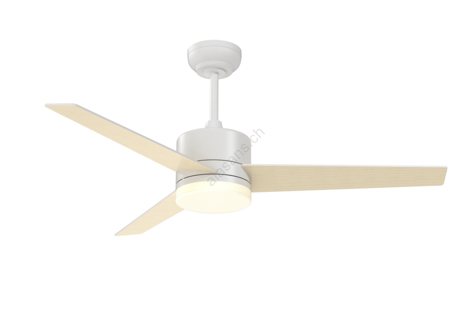 • Wendbare Lüfterblätter: eine Seite weiß, die andere in hellem Holzdekor.