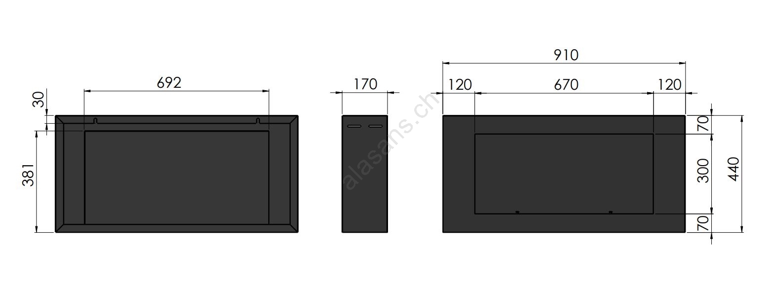 • Abmessungen des Kamins: 44 x 91 x 17 cm.