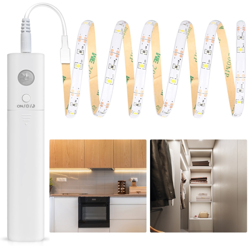 Aigostar - Striscia LED dimmerabile con sensore 1m LED/2W/4xAAA 3000K IP65