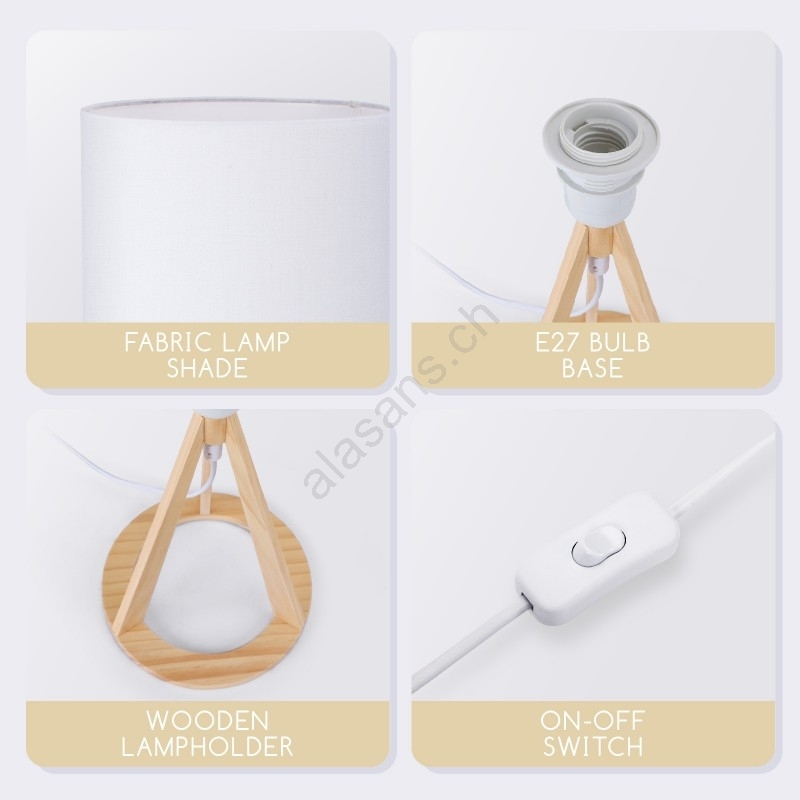 Aigostar - Lampada da tavolo in legno di pino 1xE27/60W/230V