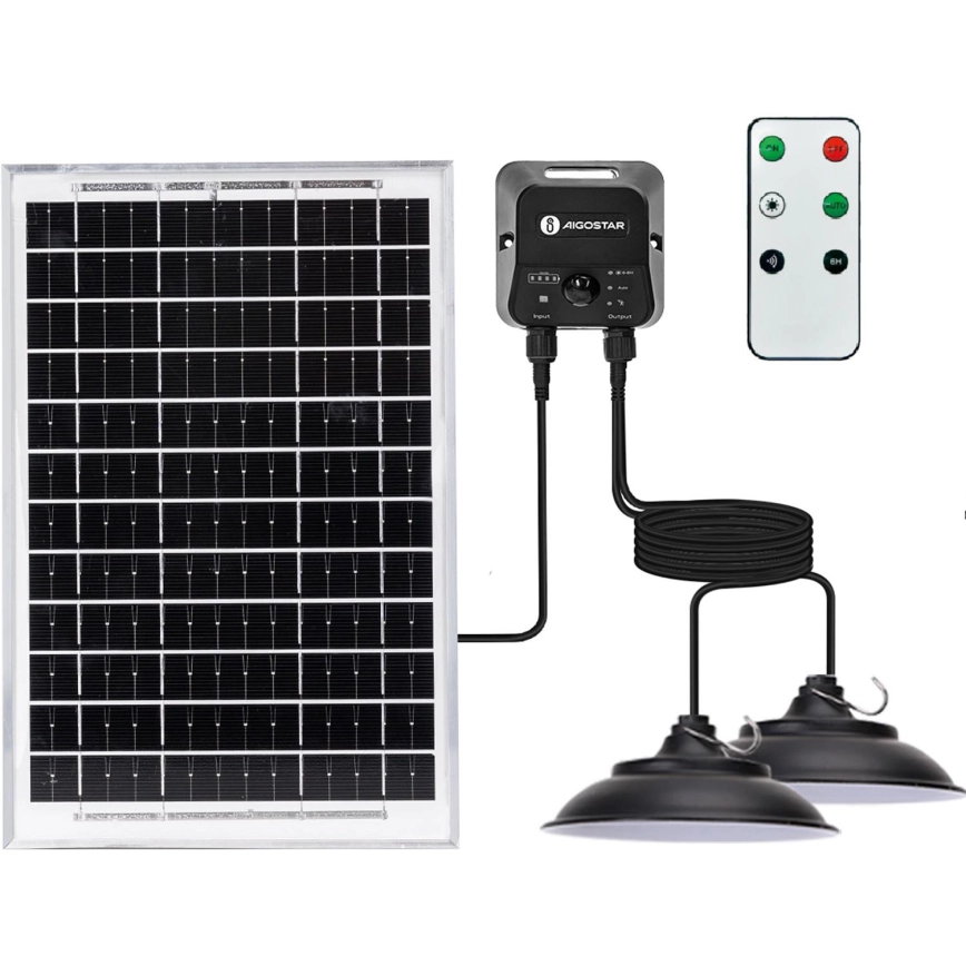 • Aigostar - Lampadario solare LED con sensore 2xLED/35W/12V 6000 mAh 6500K diametro 15 cm + telecomando