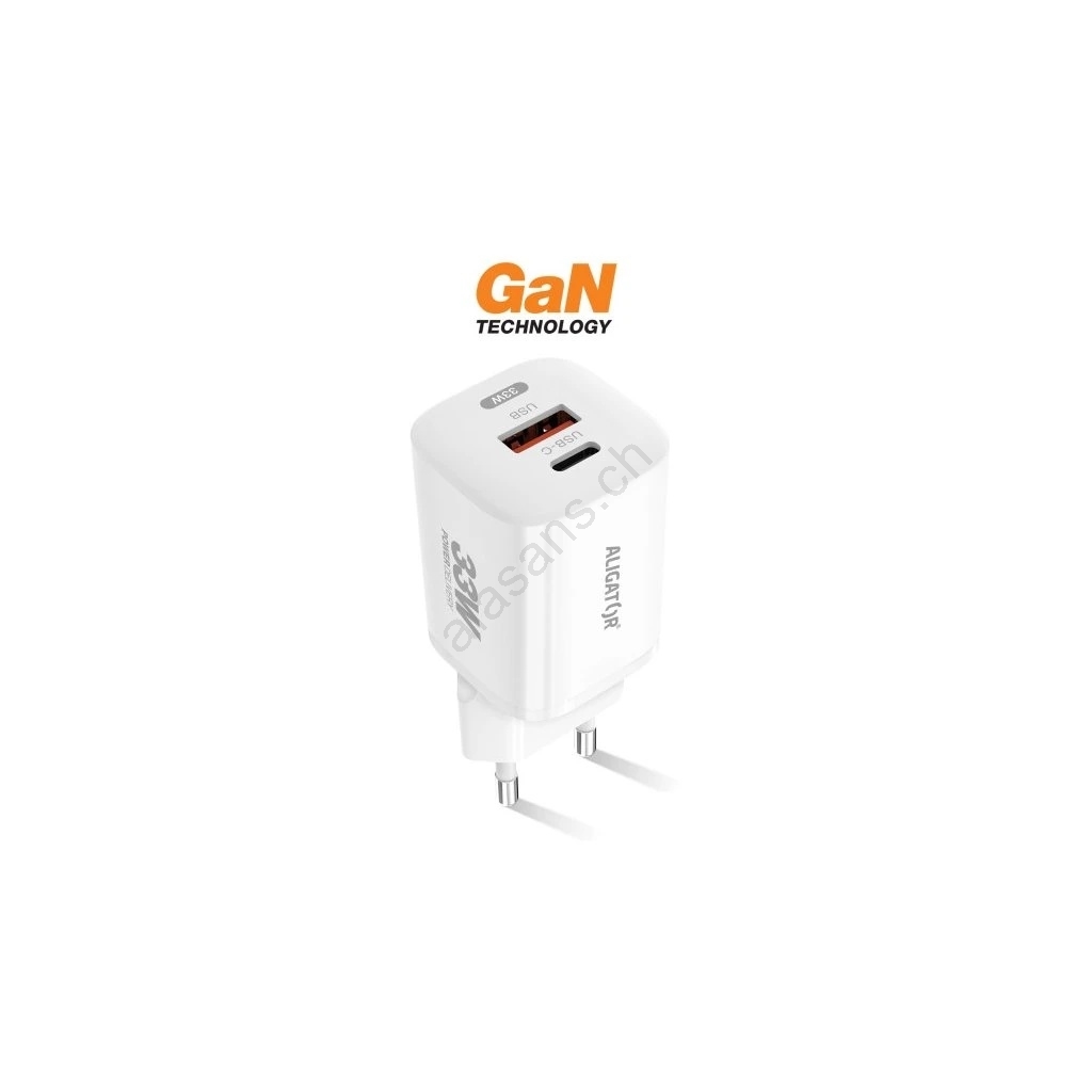 Aligator CHPD0020 - Adattatore di ricarica rapida GaN Power Delivery 33W USB-A + USB-C, bianco
