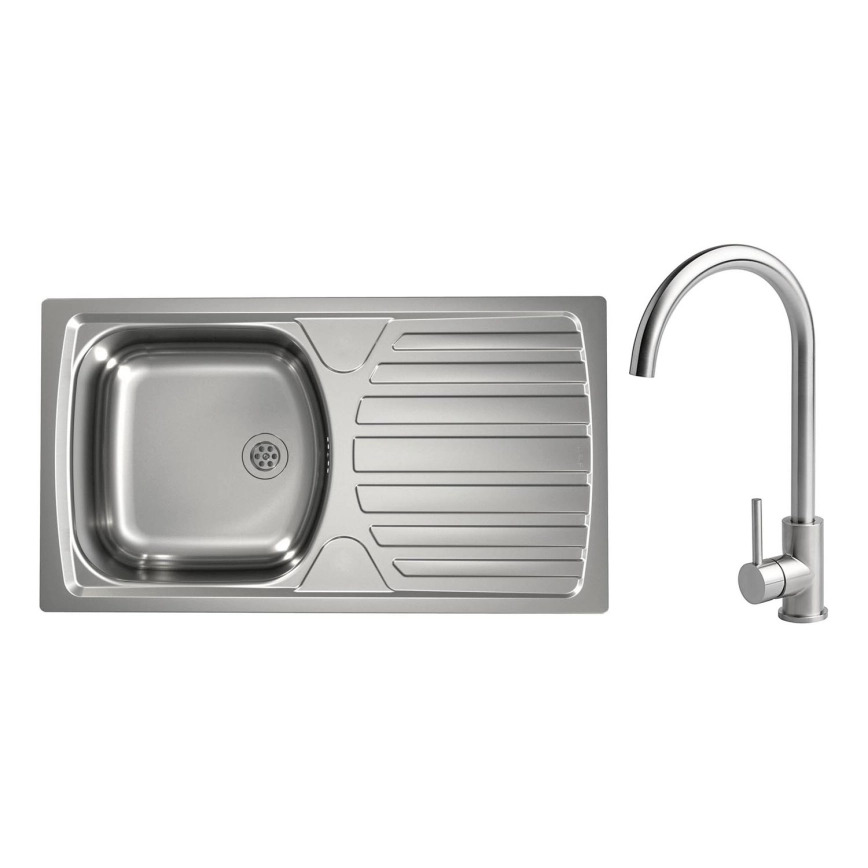 ALVEUS - Lavello da cucina BASIC 78 x 43,5 cm in acciaio opaco/satinato + miscelatore VIOLA 36,7 cm in acciaio inox spazzolato
