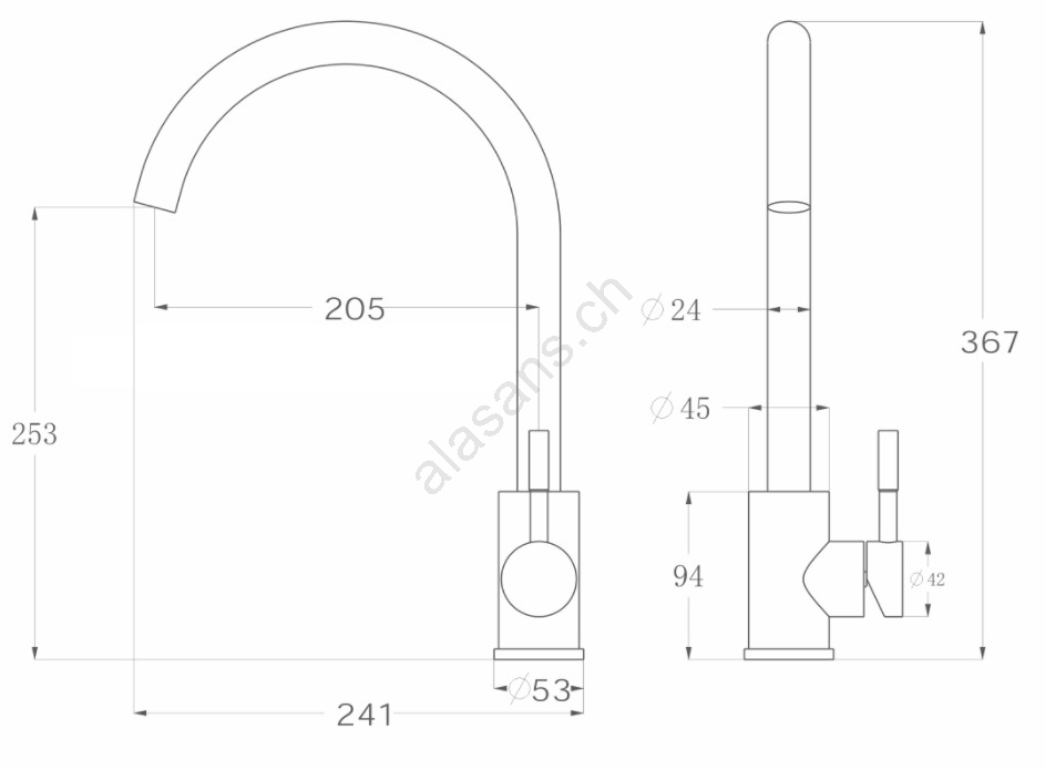• Miscelatore monocomando da cucina ad alta pressione con bocca girevole.