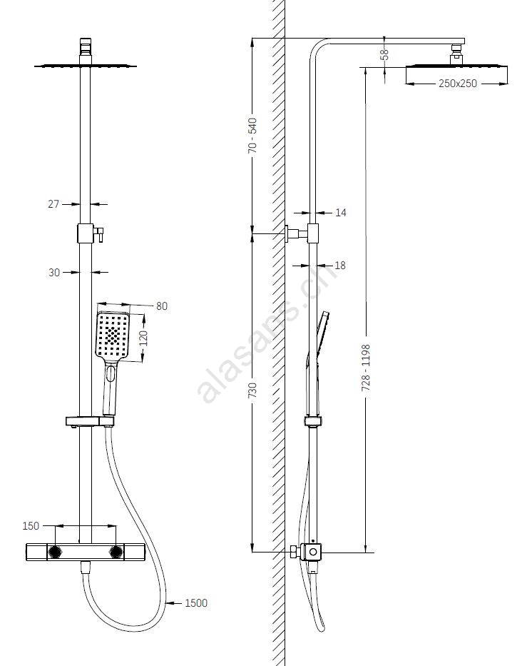 • Il set comprende un miscelatore termostatico in ottone massiccio.
