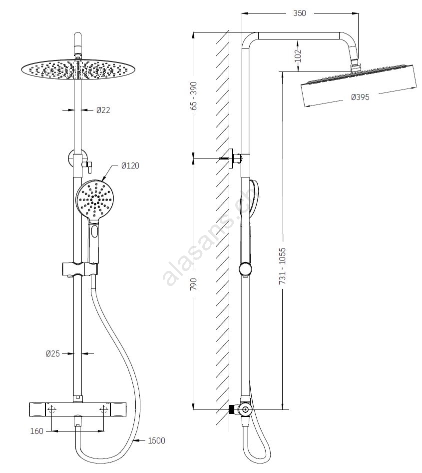 • Il set è composto da un miscelatore termostatico in ottone massiccio.