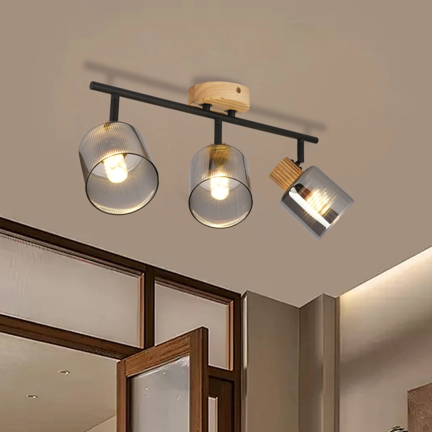 • Brilagi - Faretto HYGGE 3xE14/15W/230V legno di gomma/fumé