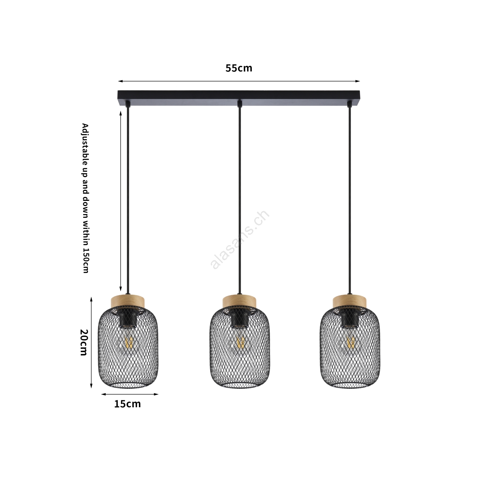 Brilagi - Lampada a sospensione con cavo BASKLITE 3xE27/15W/230V legno di Hevea/nero