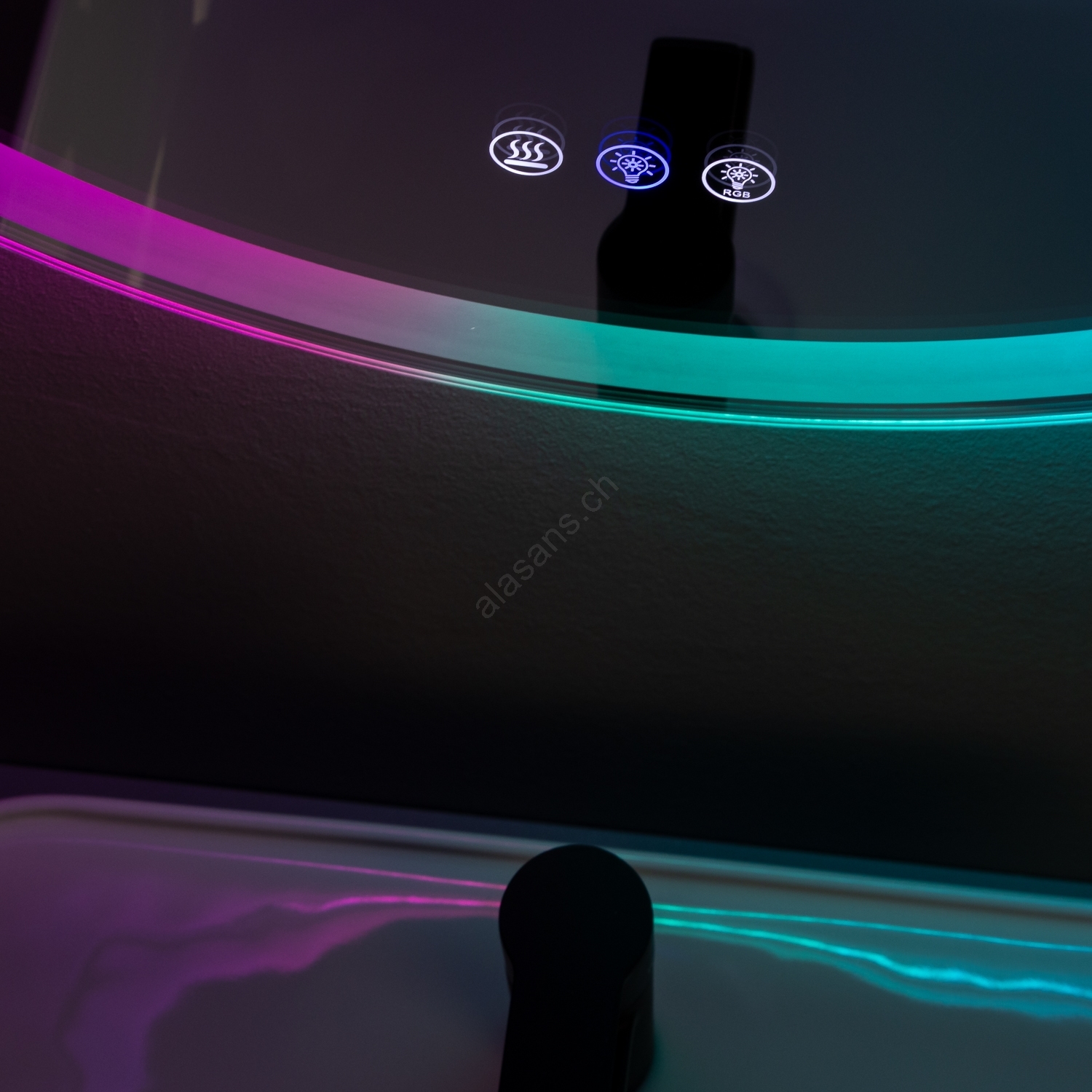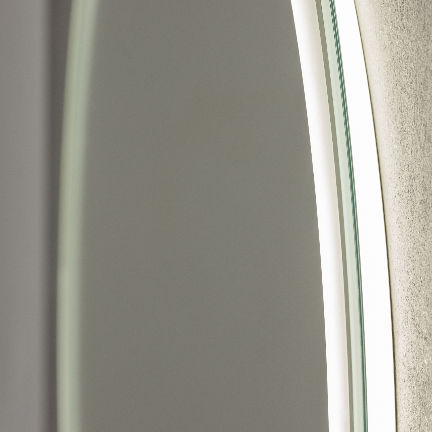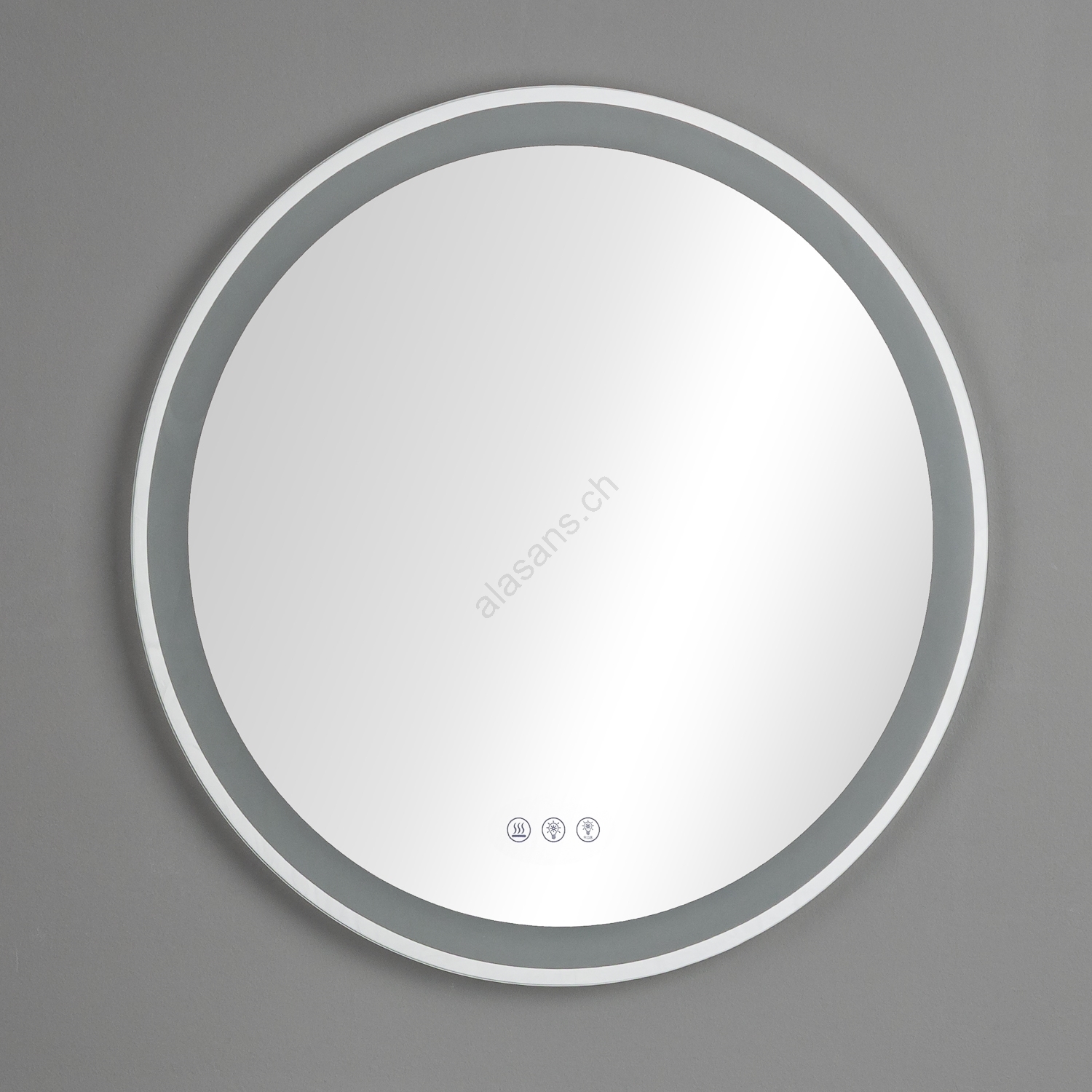• Specchio da bagno senza cornice con funzione di riscaldamento antiappannamento e illuminazione LED.