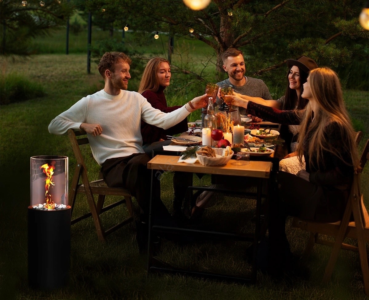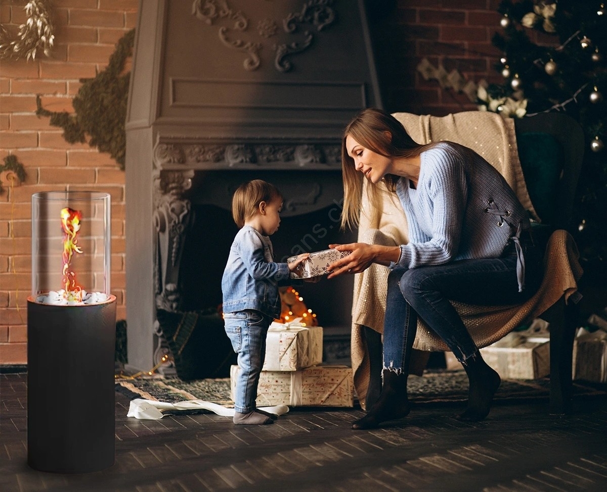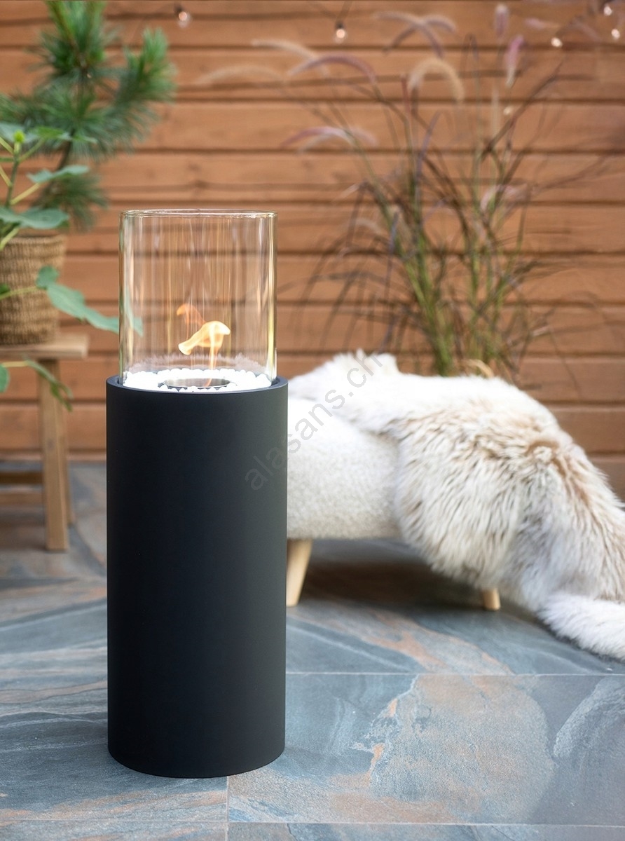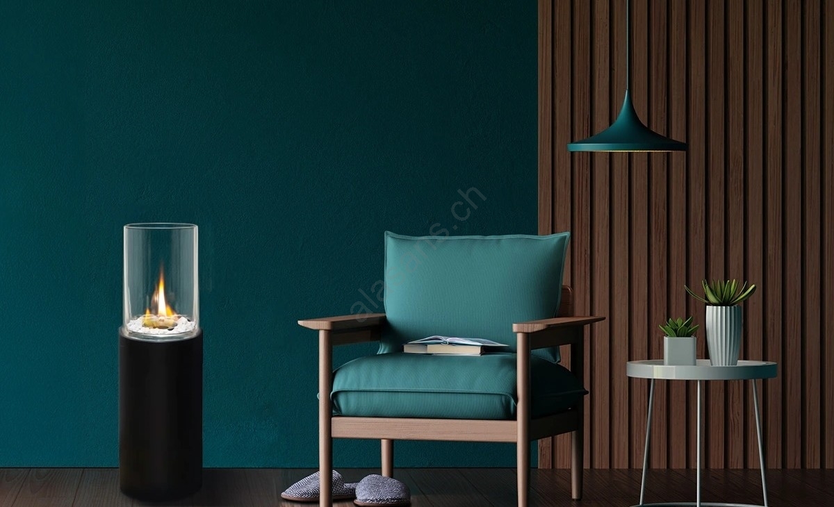 • Il vetro protettivo cilindrico garantisce sicurezza e conferisce al camino un aspetto elegante.