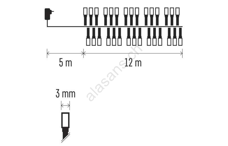 • Lunghezza cavo illuminato: 12 m.