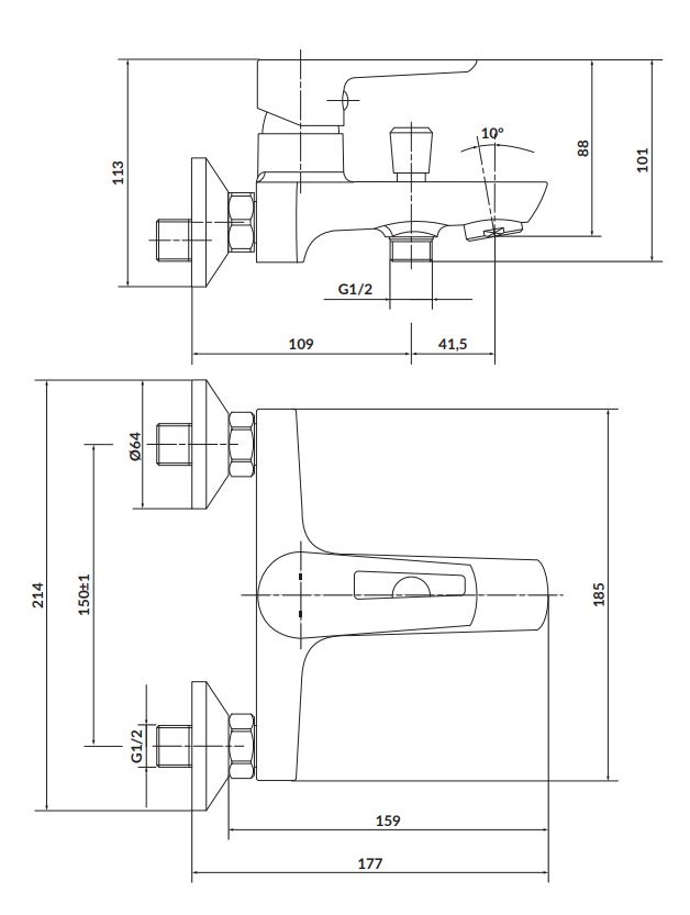 • Questo miscelatore monocomando per vasca da bagno è un complemento elegante per ogni bagno.