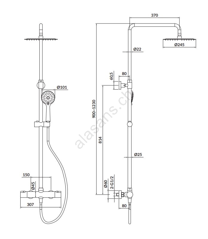 • Il set include un tubo doccia lungo 150 cm.