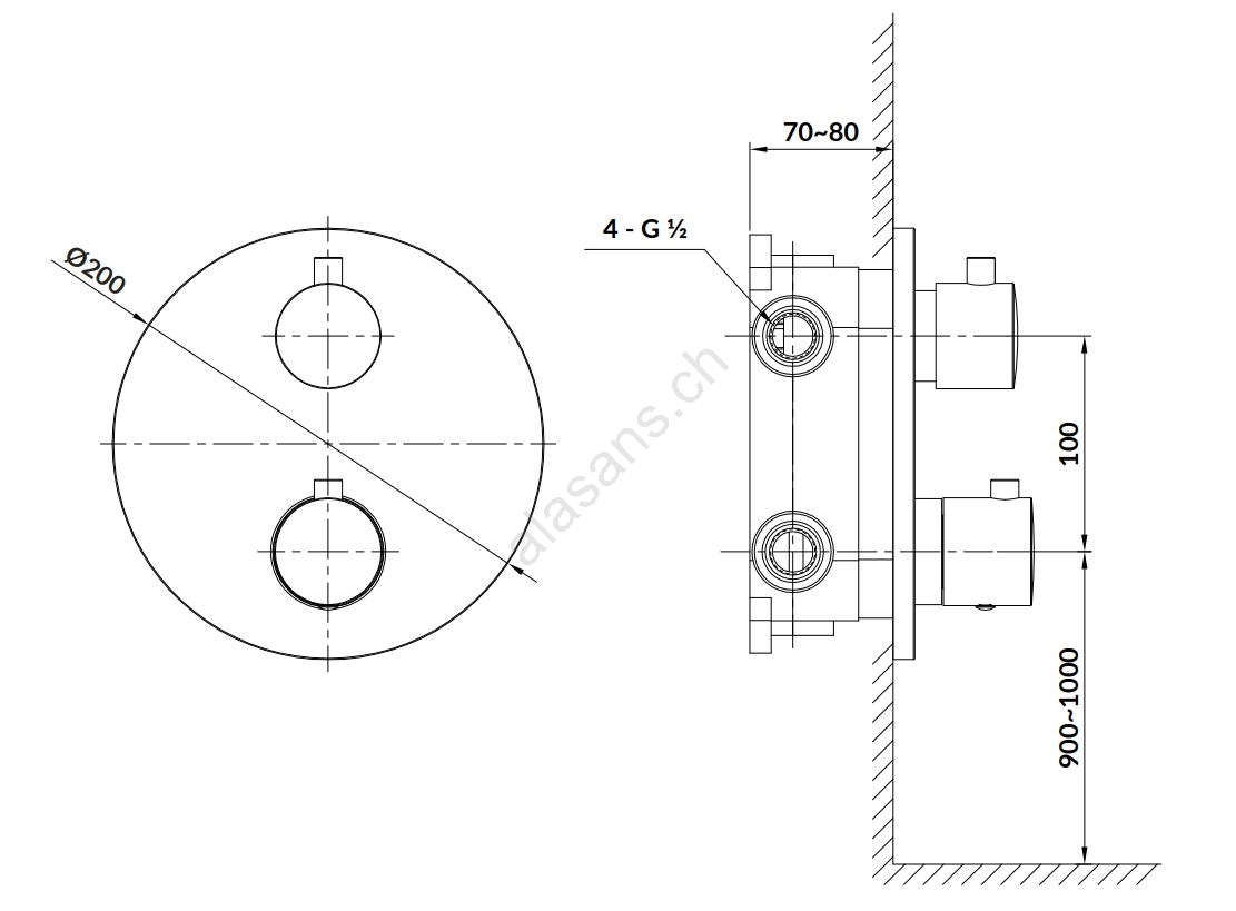 • Dotato di una testina termostatica di alta qualità con deviatore per il flusso d'acqua tra uscita e doccetta.