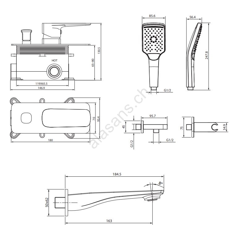 • Questo set per vasca con miscelatore incassato è un complemento elegante per ogni bagno.