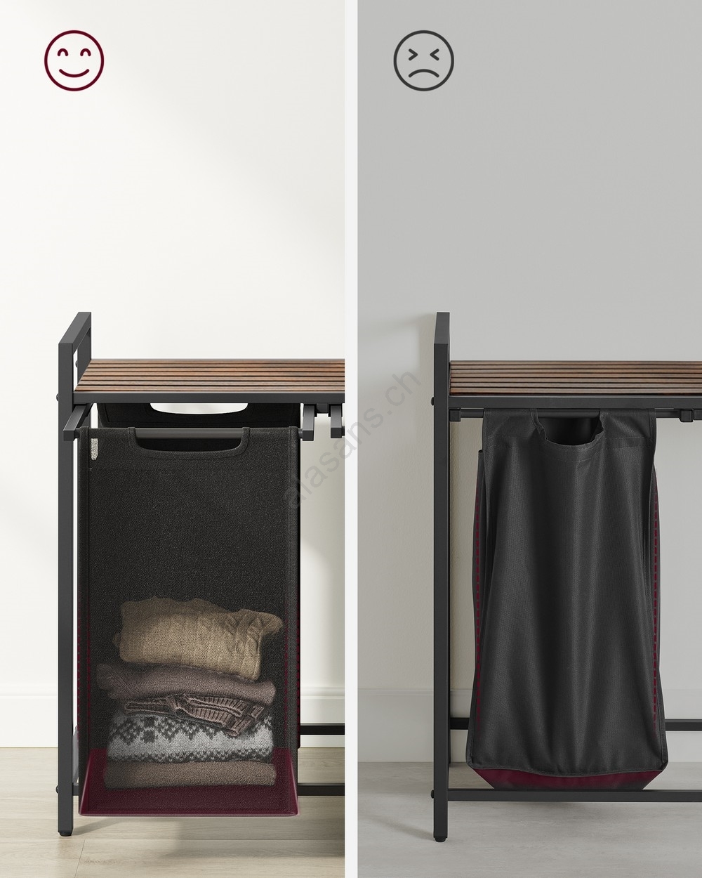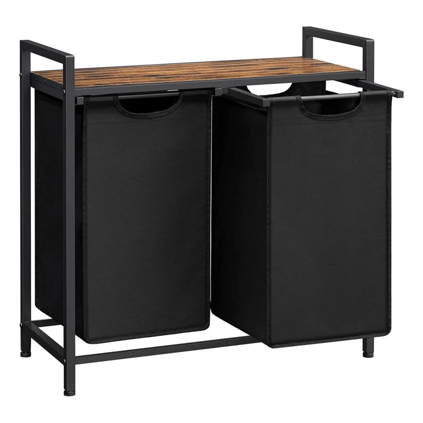 • 2 sacchi, 1 ripiano – Smista il bucato in due sacchi in tessuto (46 l per sacco) e riponi detergenti, ammorbidente e altri articoli sul ripiano.