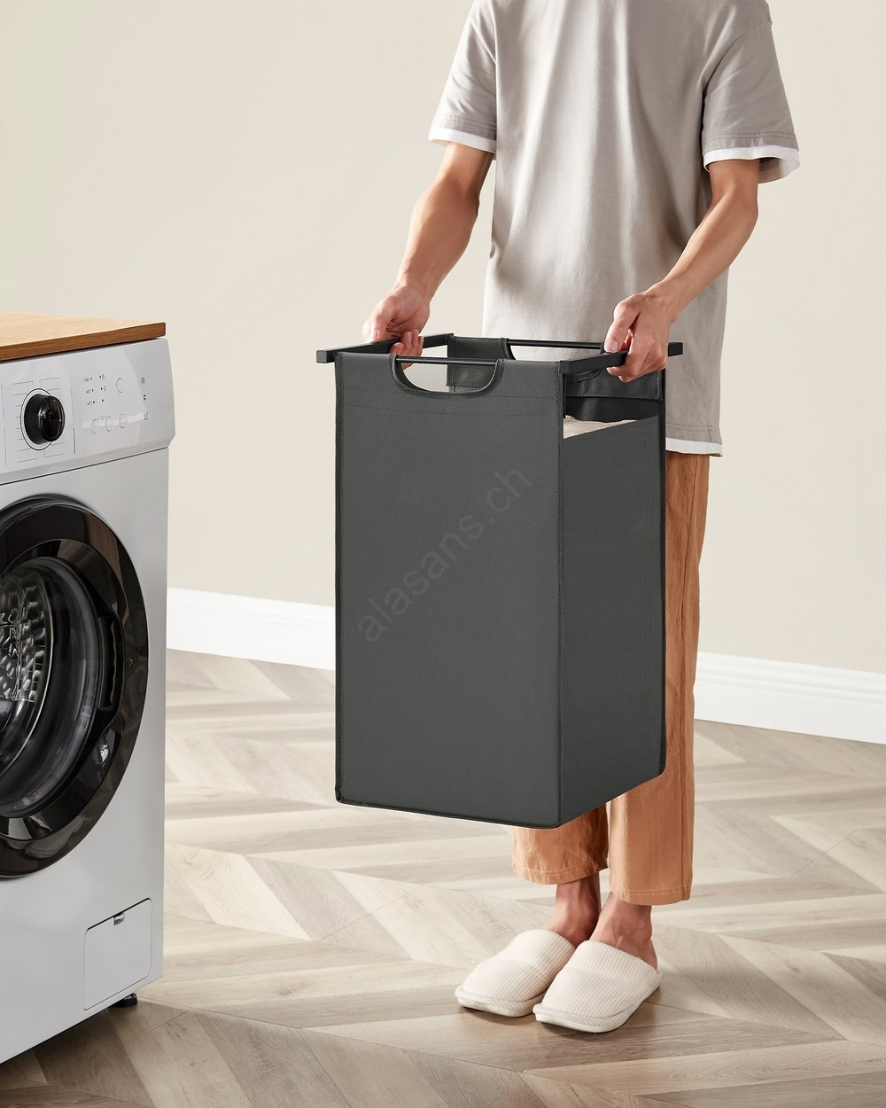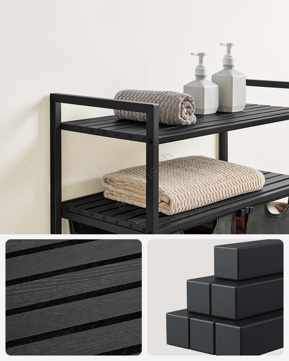• 2 sacchi, 2 ripiani – Separate il bucato in due sacchi in tessuto (46 l per sacco) e sistemate detersivi, ammorbidenti e altri accessori sui ripiani sopra di essi.