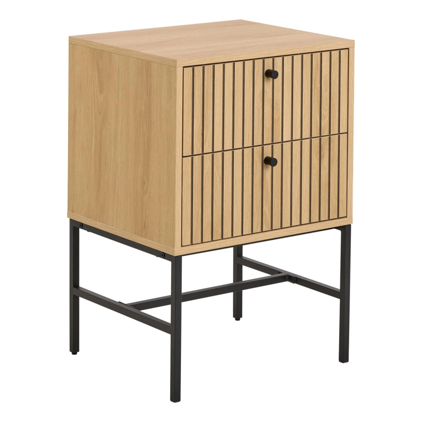 • Questo comodino con finitura effetto rovere e frontale a lamelle dona alla tua casa stile e praticità.