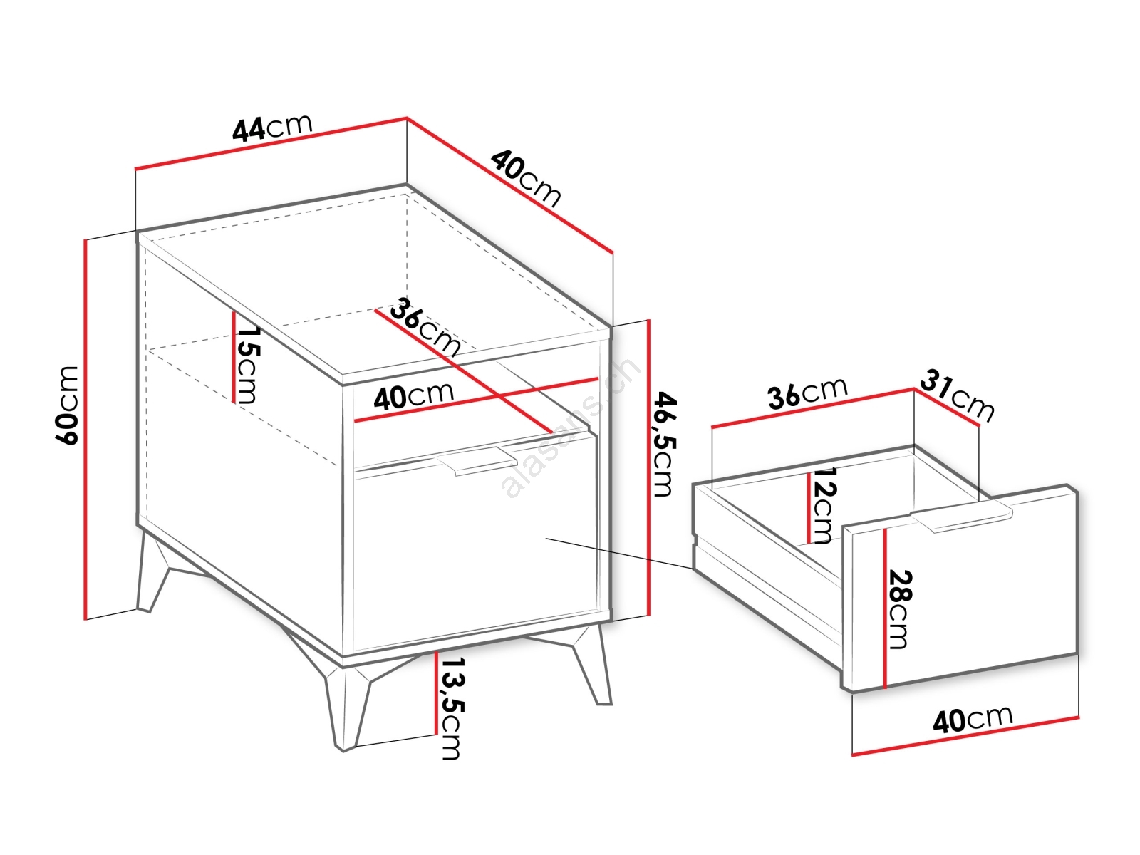 • Comodino con un pratico cassetto per riporre gli oggetti che vuoi avere a portata di mano accanto al letto.