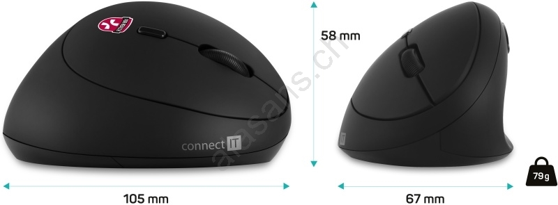 CONNECT IT CMO-2600-BK - Mouse ergonomico wireless 800/1200/1600 DPI 1xAA nero