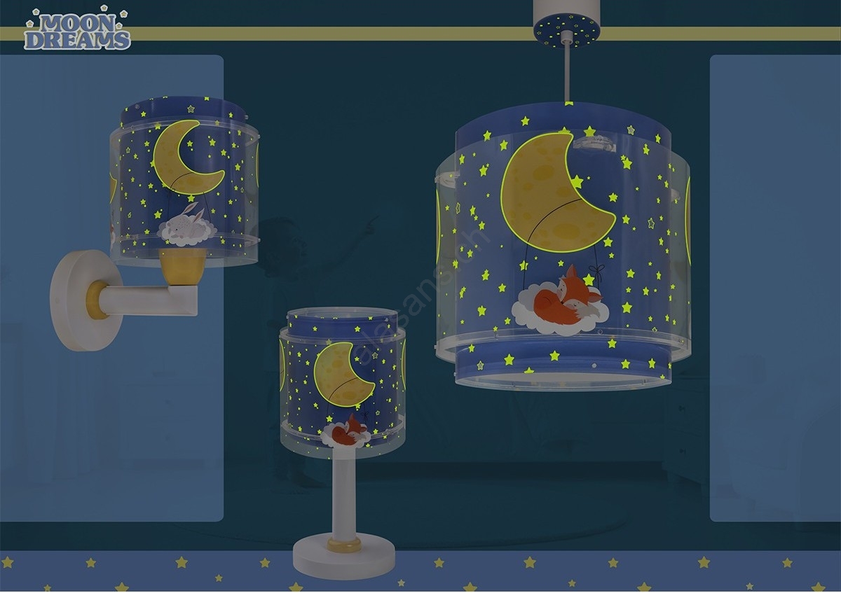 • Dalber 76639 - Lampada da parete per bambini MOON DREAMS 1xE27/15W/230V blu