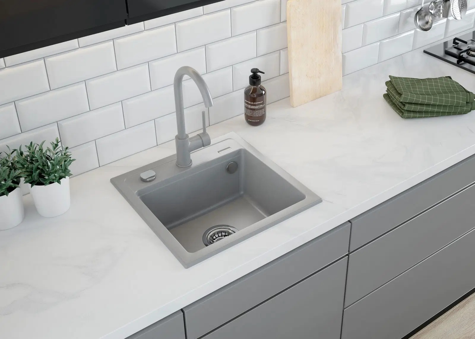 • Deante ZQZ_S103 - Lavello da cucina ZORBA 44 x 44 cm, granito/grigio metallizzato