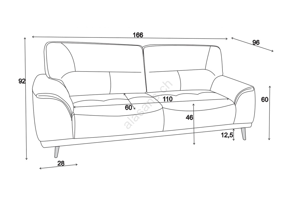 • Con un'altezza della seduta confortevole di 46 cm e una profondità di 60 cm, garantisce una seduta ergonomica e rilassante.
