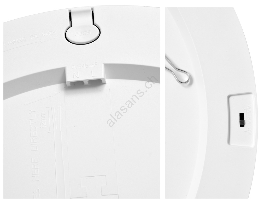 • La lampada può essere installata a plafone avvitandola direttamente alla superficie o fissandola con molle scorrevoli, che vengono inserite nel foro predisposto in modo simile come per i faretti.