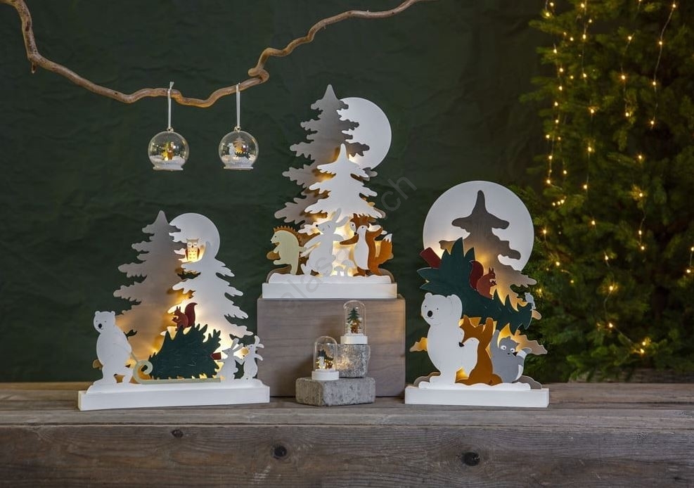 • Set di 2 decorazioni natalizie a LED realizzate in legno tagliato al laser.