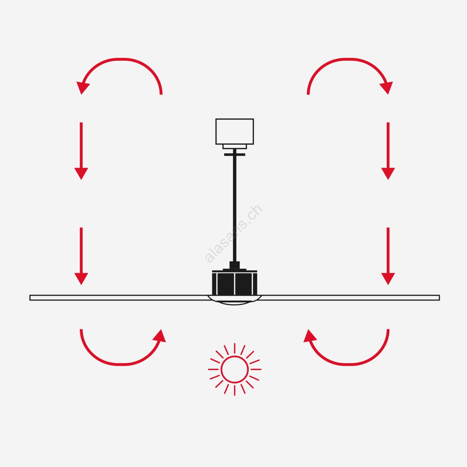 • Il ventilatore è adatto ai soffitti inclinati.