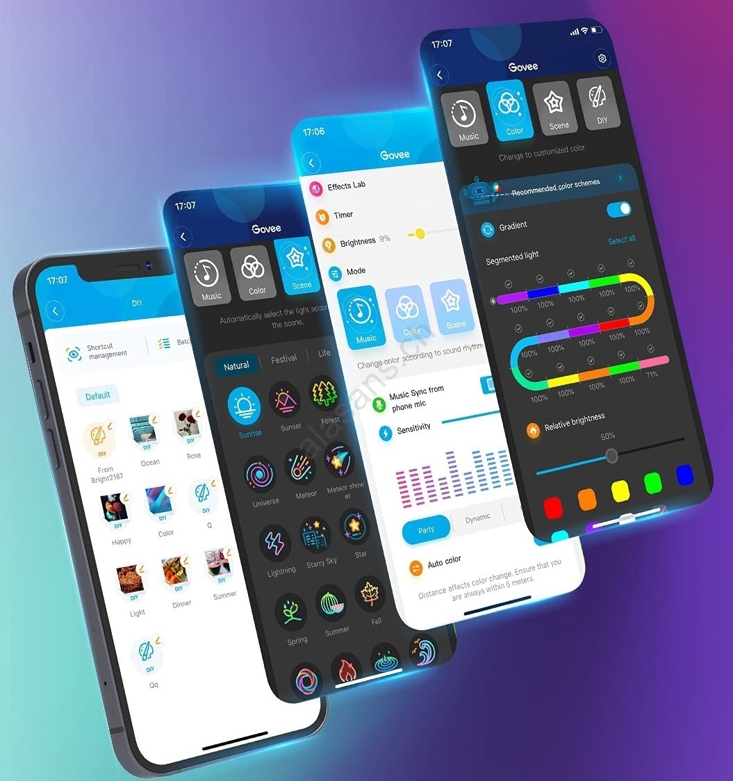 • Gestisci facilmente le impostazioni di colore e intensità luminosa tramite la app Govee Home (compatibile con iOS e Android).