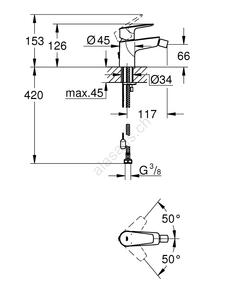 • La tecnologia GROHE Water Saving riduce il consumo d'acqua a 5 l/min a 3 bar.