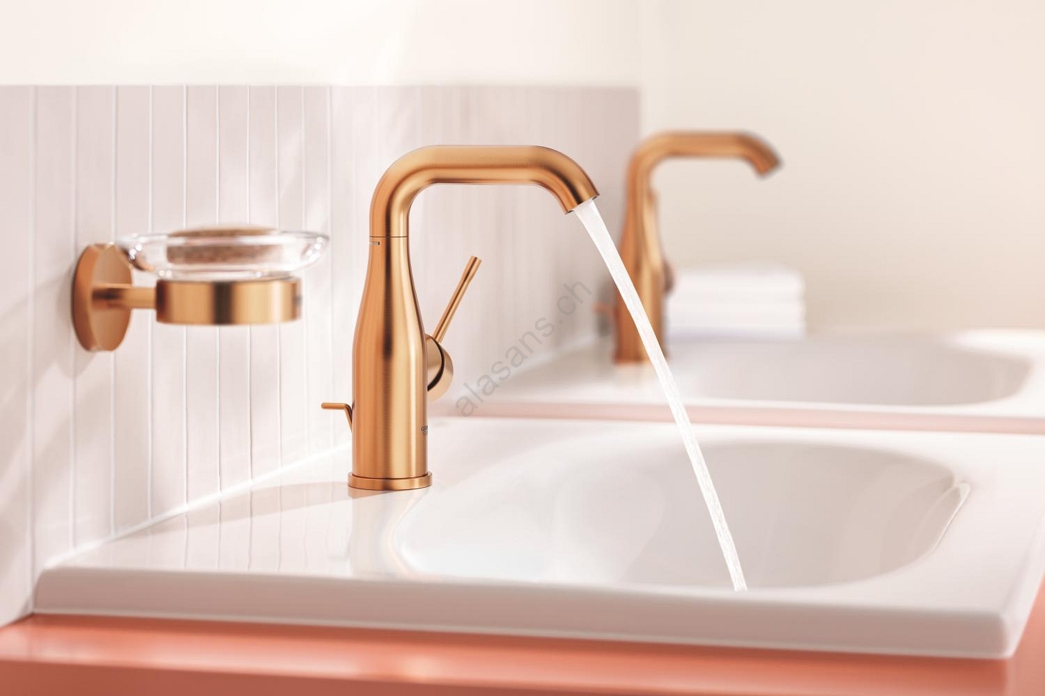 • Elegante miscelatore monocomando a leva GROHE Essence nella finitura Brushed Warm Sunset.