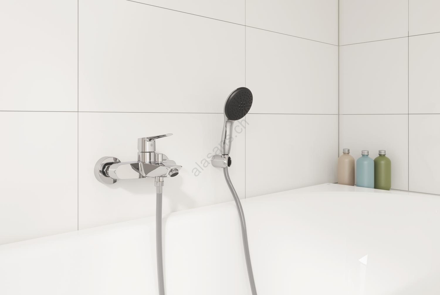 • Miscelatore monocomando da parete per vasca con leva e finitura cromata GROHE Long-Life per una lucentezza duratura.