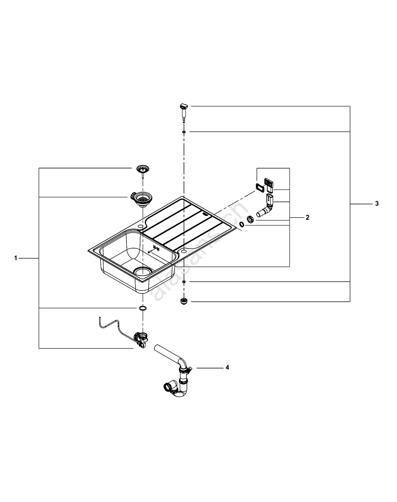 • 14 elementi di fissaggio assicurano un'installazione del lavello stabile e sicura.