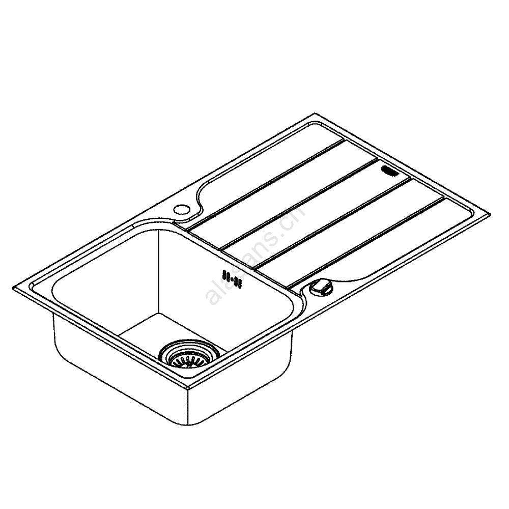 • Ampio lavello da cucina con dimensioni 860 x 500 mm e profondità 170 mm, ideale per lavare comodamente pentole e padelle di grandi dimensioni.