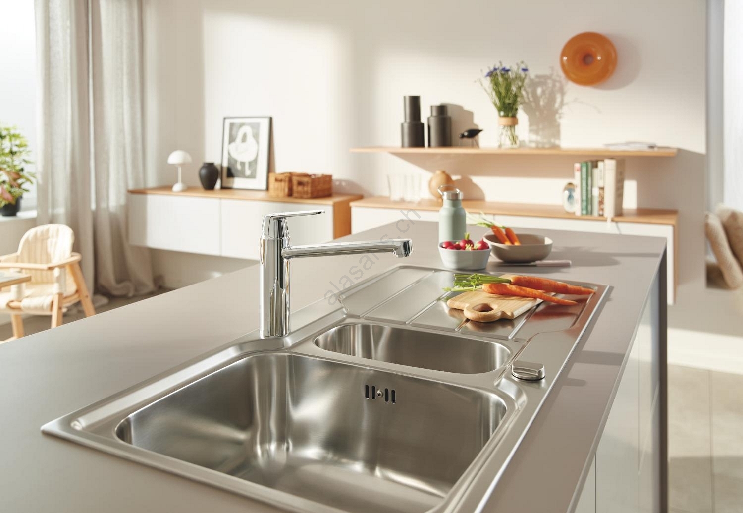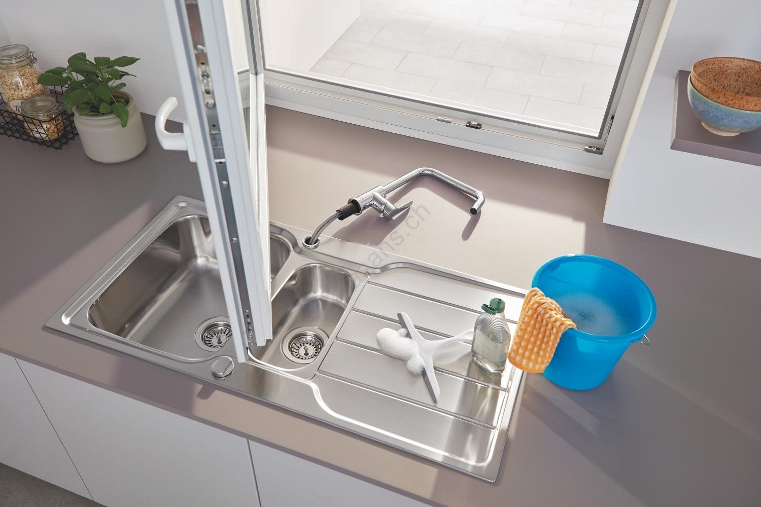 • Il lavello in acciaio inossidabile GROHE K500 con gocciolatoio e 1,5 vasche è semplicemente la scelta ideale, soprattutto per la sua flessibilità e affidabilità.