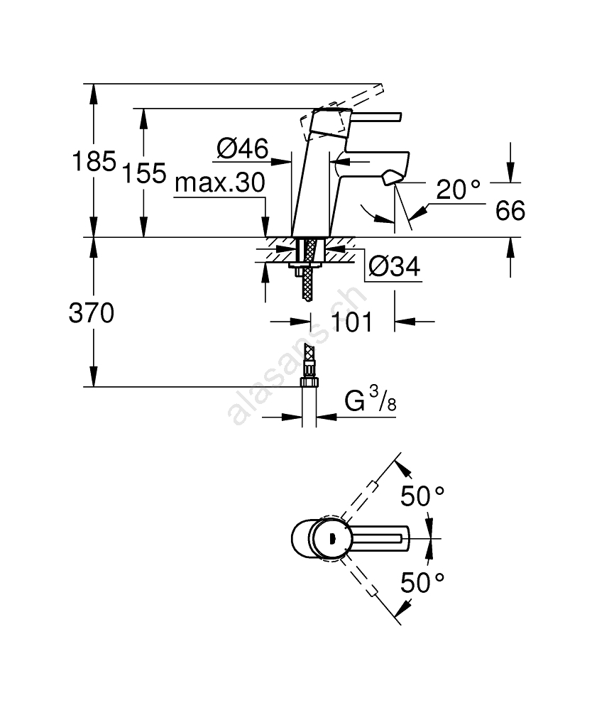 • La tecnologia GROHE Water Saving riduce il consumo d'acqua fino a 5 l/min a 3 bar di pressione.