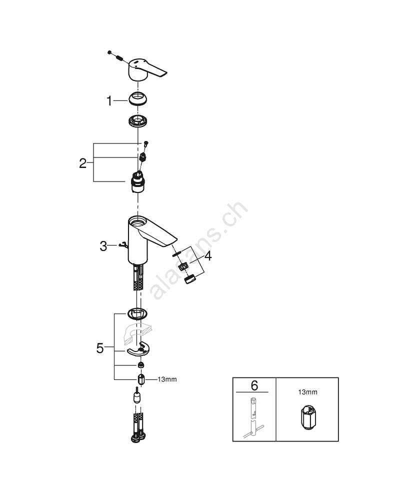 • Aeratore GROHE EcoJoy con portata di 5,7 l/min per un utilizzo efficiente dell'acqua.