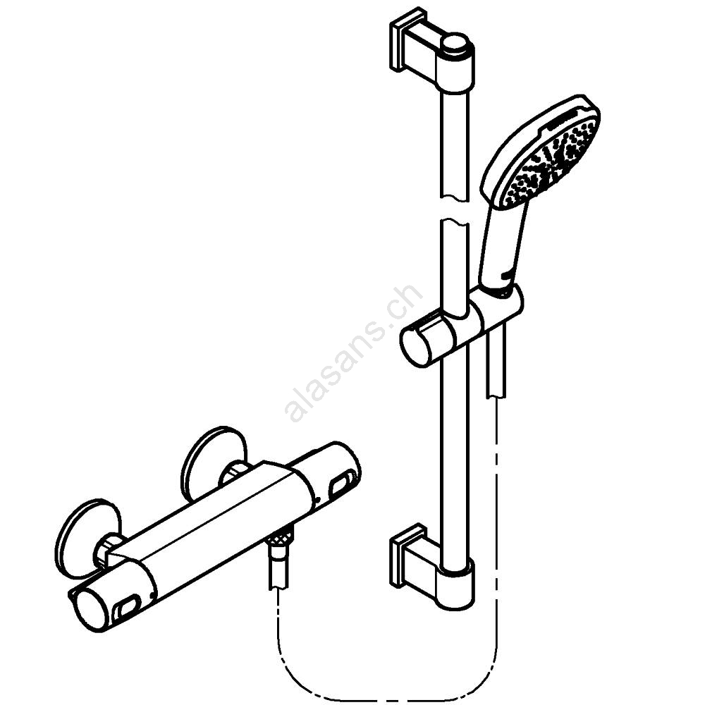 • La barra doccia da 600 mm con supporti regolabili permette l'installazione nei fori esistenti.