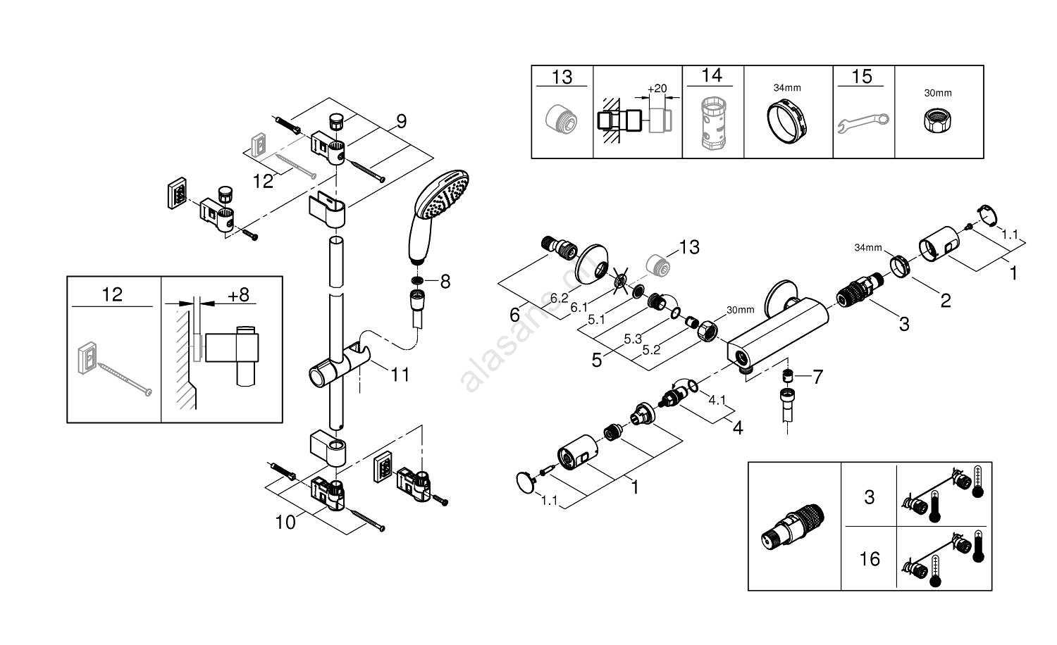 • Il sistema GROHE QuickSpanner consente un'installazione semplice senza l'uso di attrezzi aggiuntivi.
