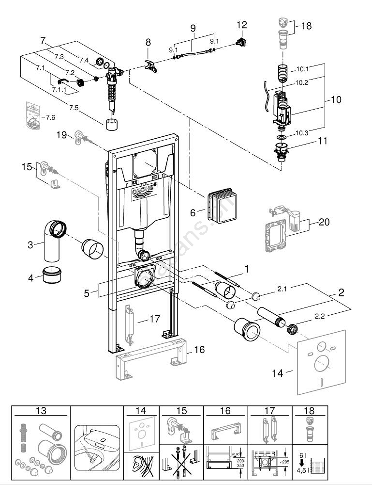 • Per il montaggio di pulsanti di scarico di piccole dimensioni è necessario ordinare il pozzetto d'ispezione 40 911 000 (venduto separatamente).