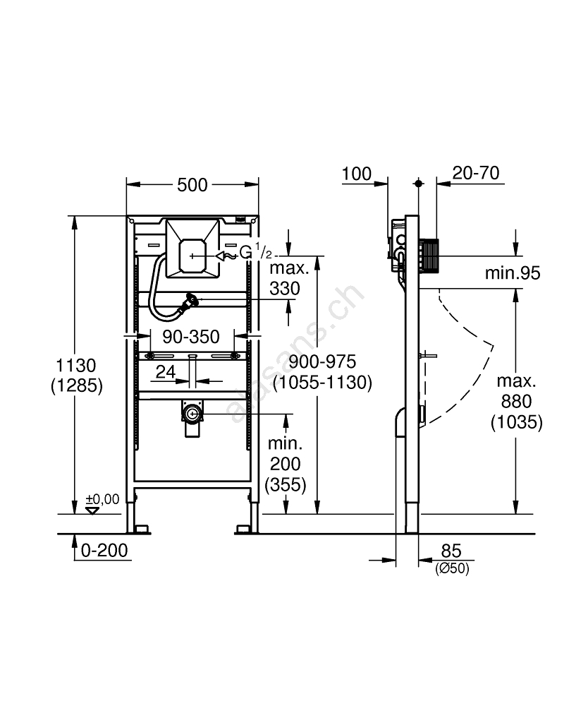 GROHE 38786001 - Modulo per urinale RAPID SL 1,13 m e 1,30 m