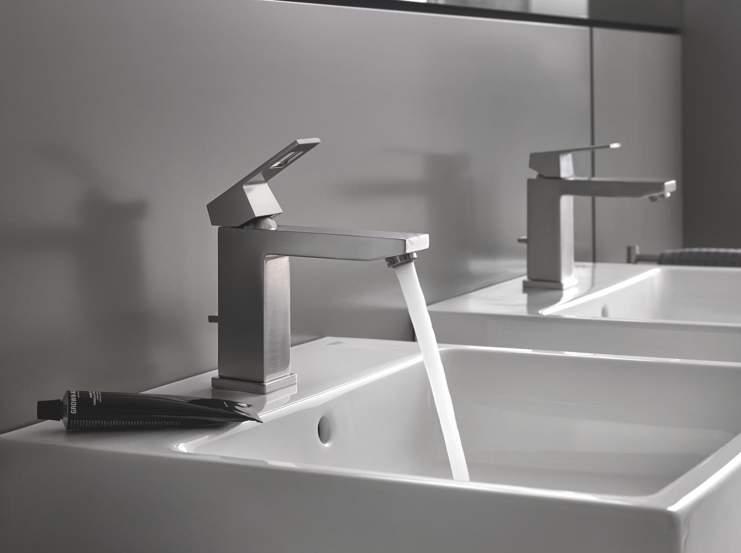• La finitura GROHE PureGuard respinge il calcare e i batteri.