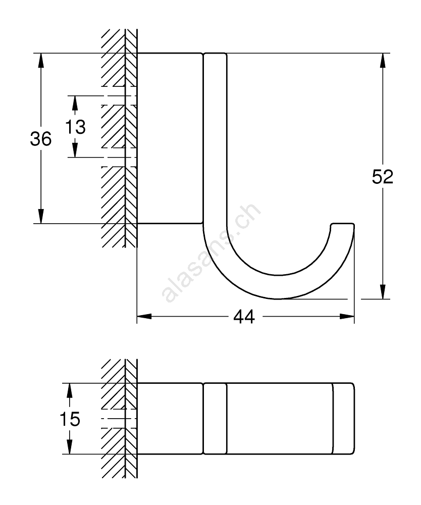 GROHE 41039AL0 - Gancio per accappatoio SELECTION 5,2 cm × 1,5 cm × 4,4 cm grafite