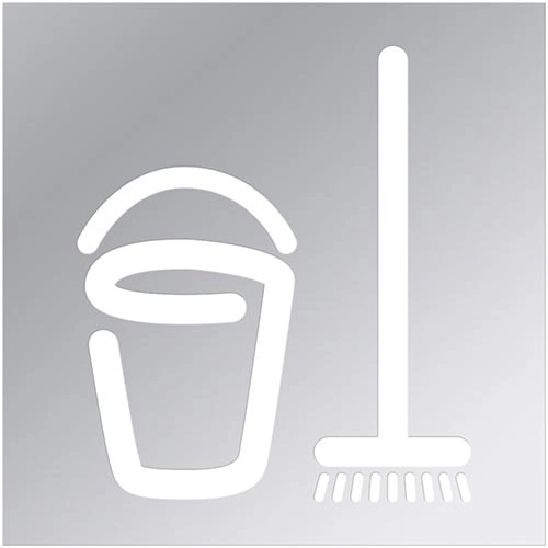 • Pittogramma in acciaio inossidabile per segnalare il locale per le pulizie.