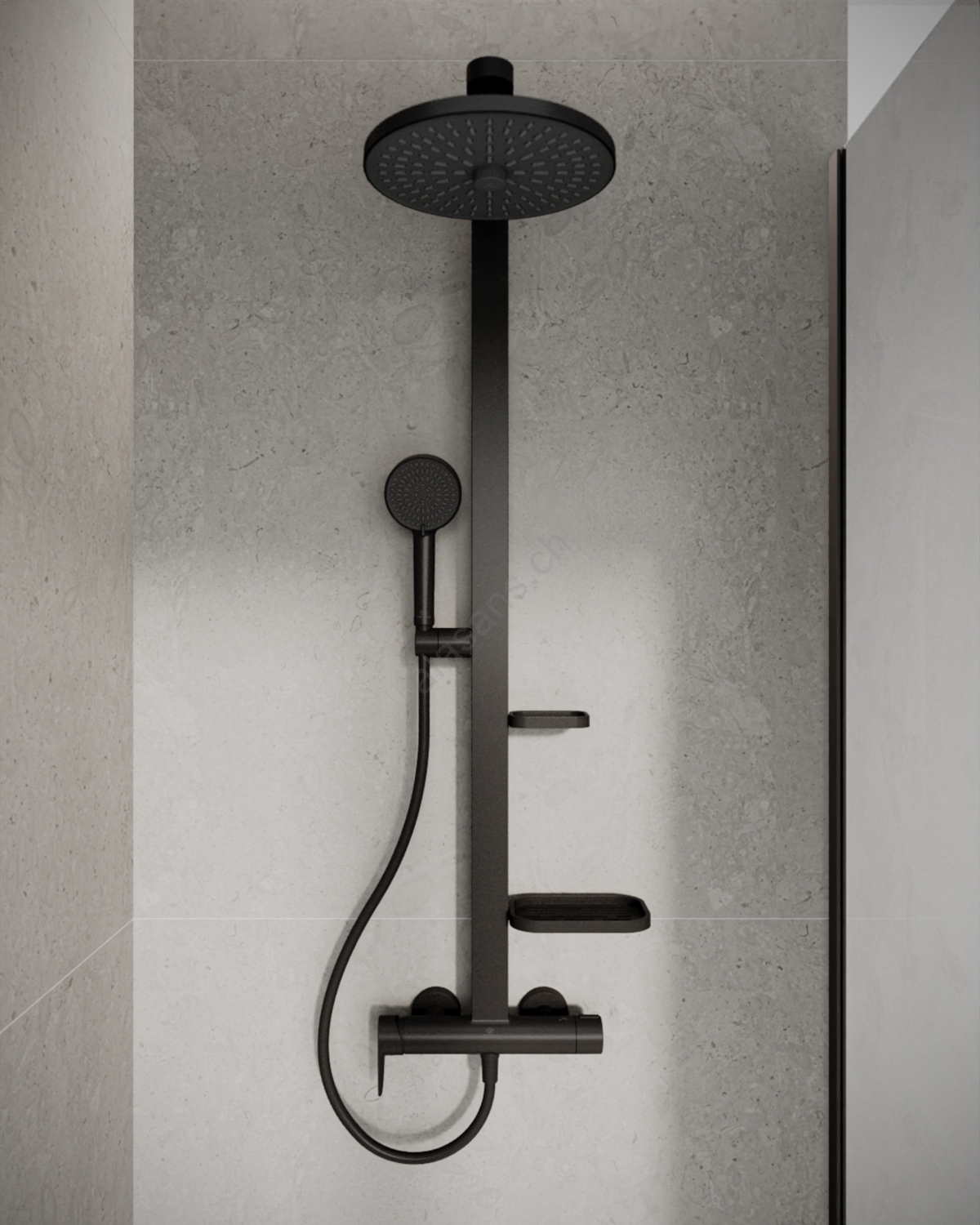 • Il set doccia Ceraflow ALU+ offre un equipaggiamento completo per una doccia comoda e moderna in un'elegante finitura nero seta.