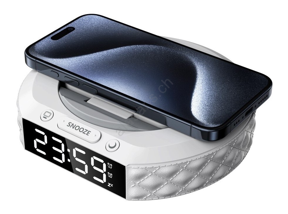 • Orologio da tavolo elegante e supporto di ricarica per i tuoi dispositivi Smart.