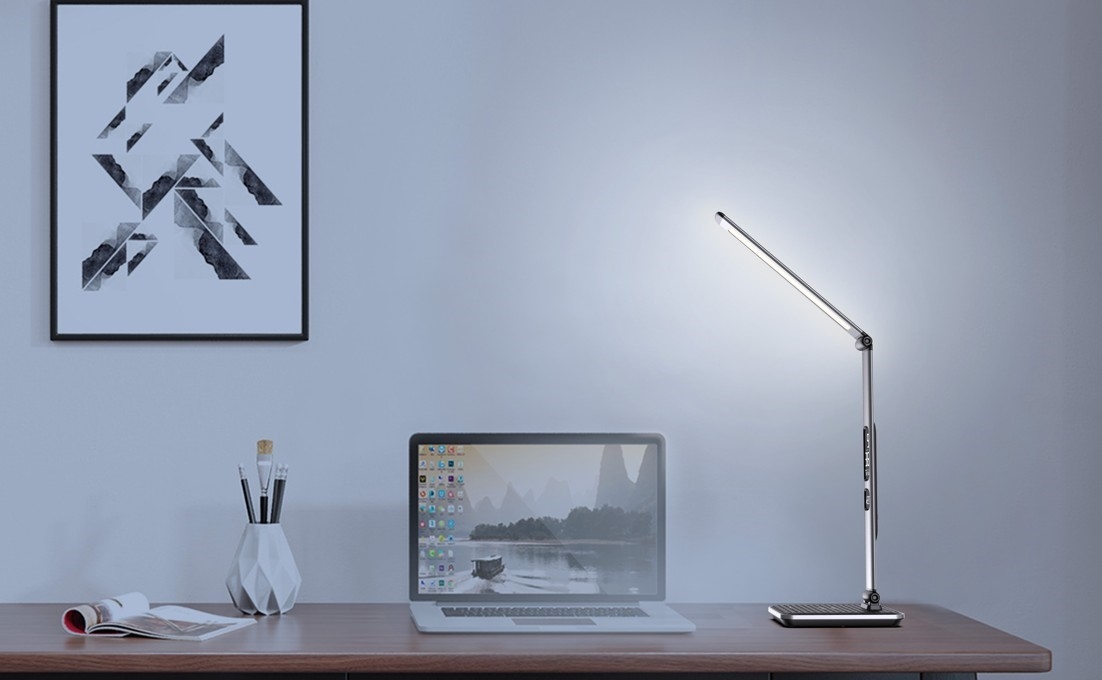 Lampada da tavolo dimmerabile a LED, 8,5 W/230 V, con ricarica wireless, argento